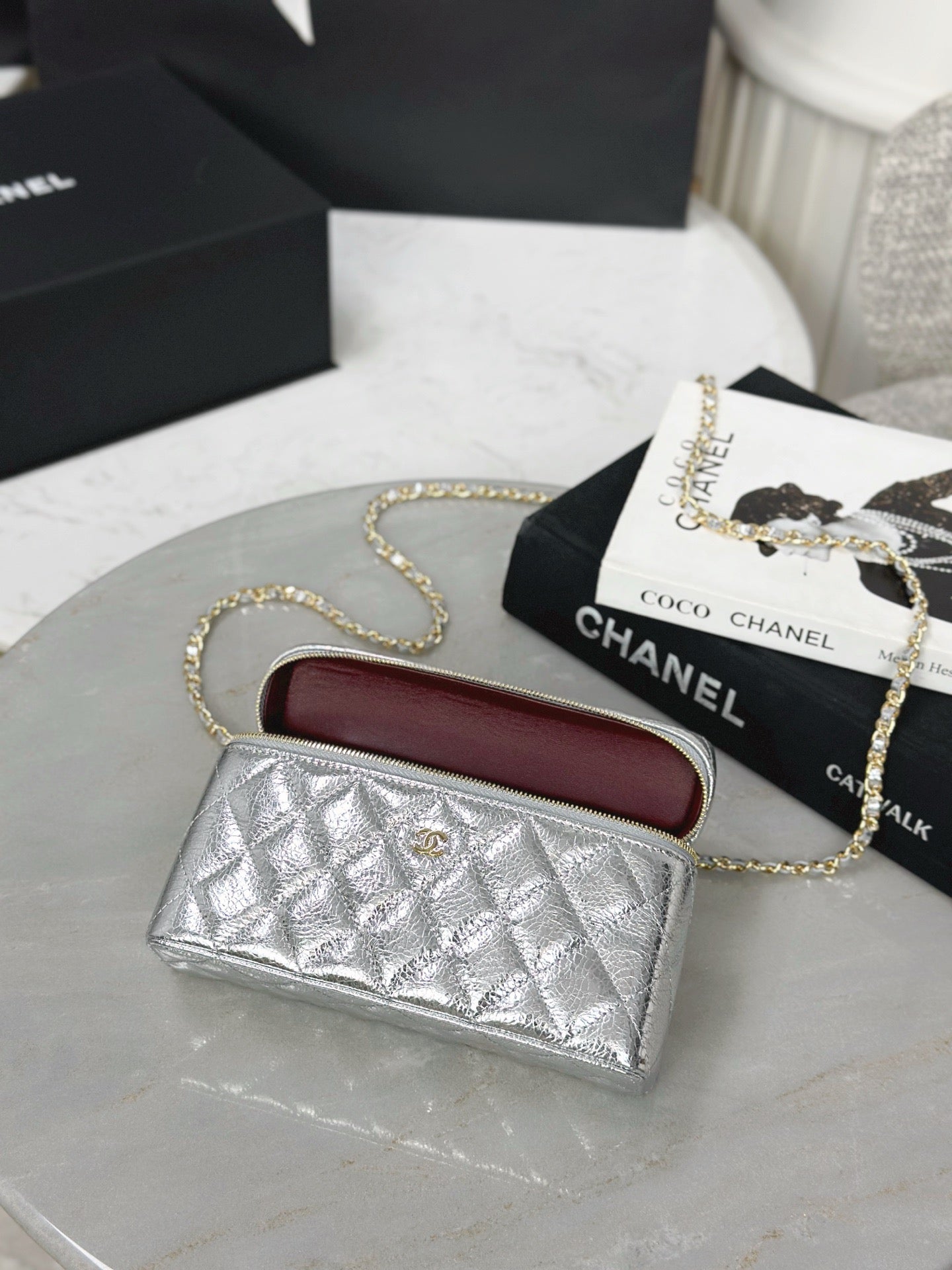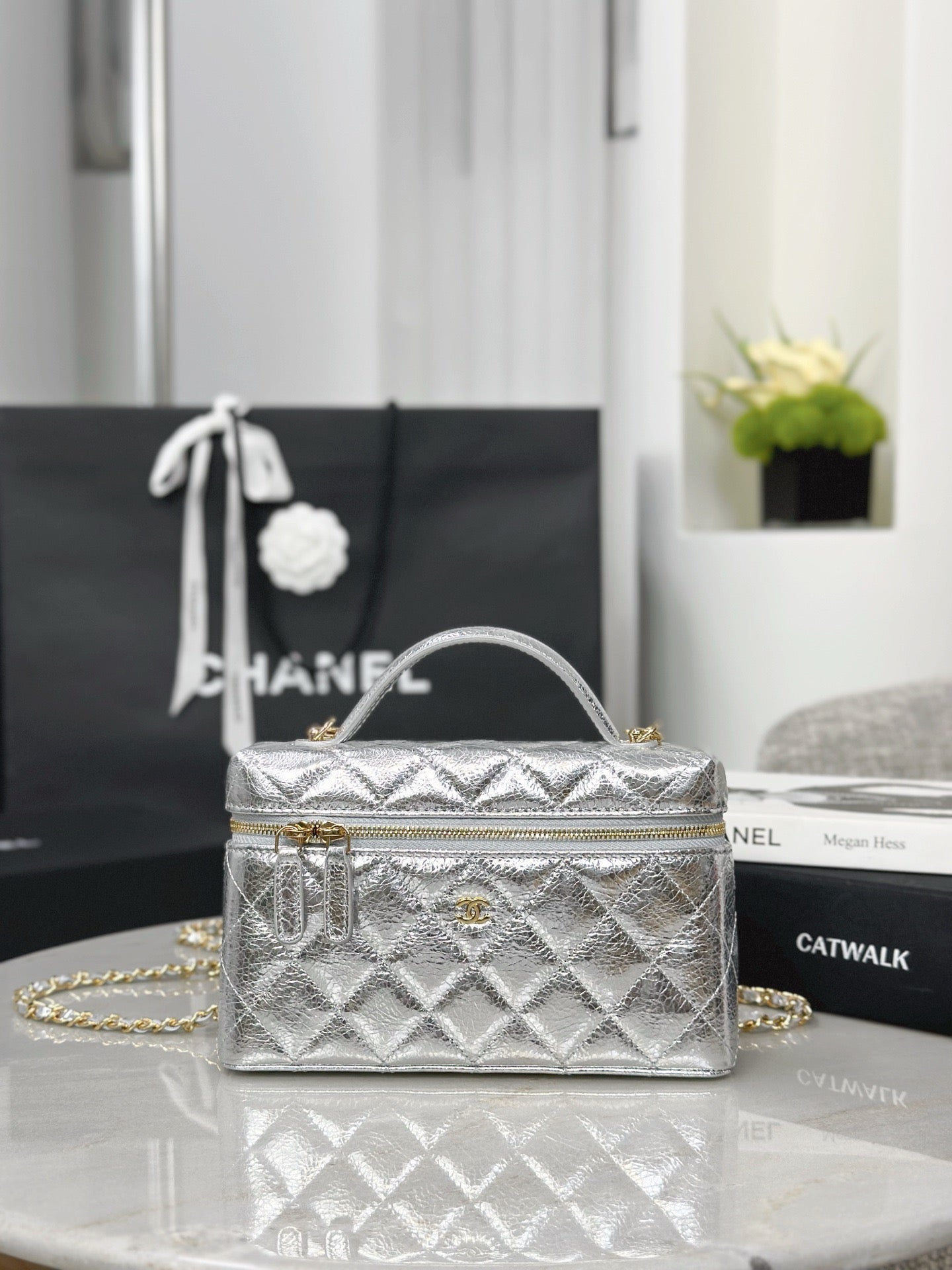 - Silver cowhide leather