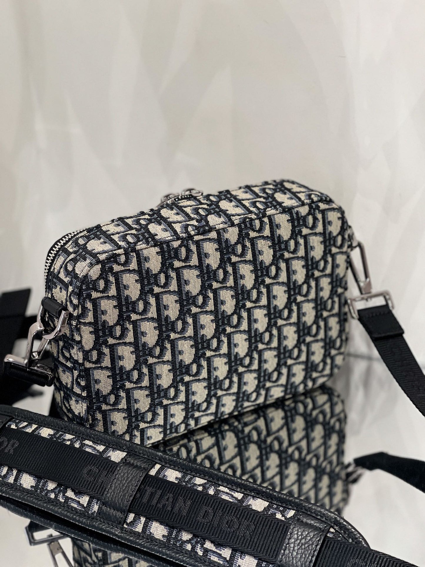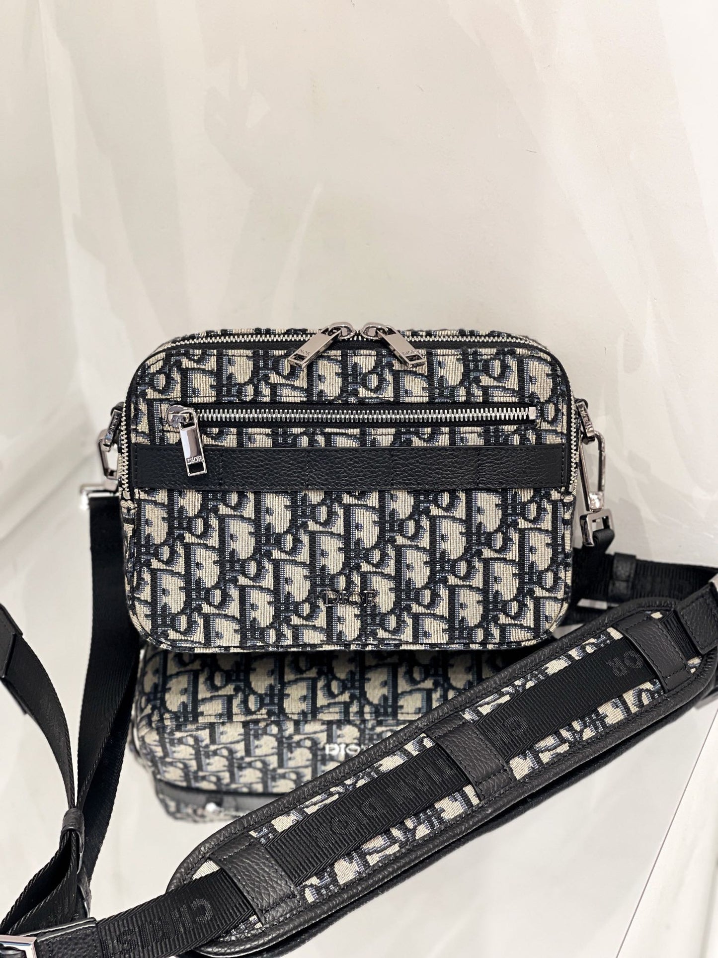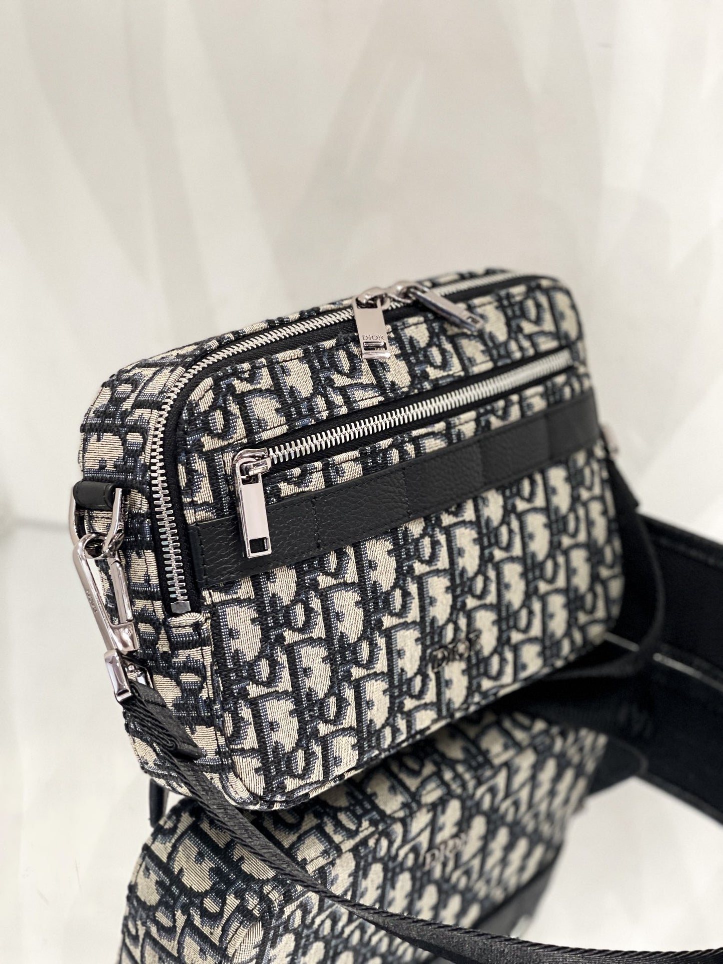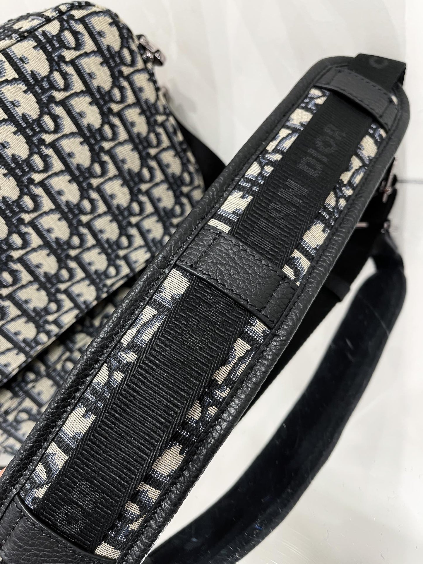 - Adjustable and removable 'Christian Dior' technical fabric jacquard shoulder strap